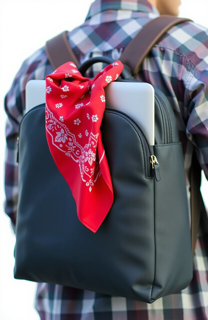 Tie a bandana to your backpack for an instant style boost. It’s a subtle yet effective way to make your bag stand out.