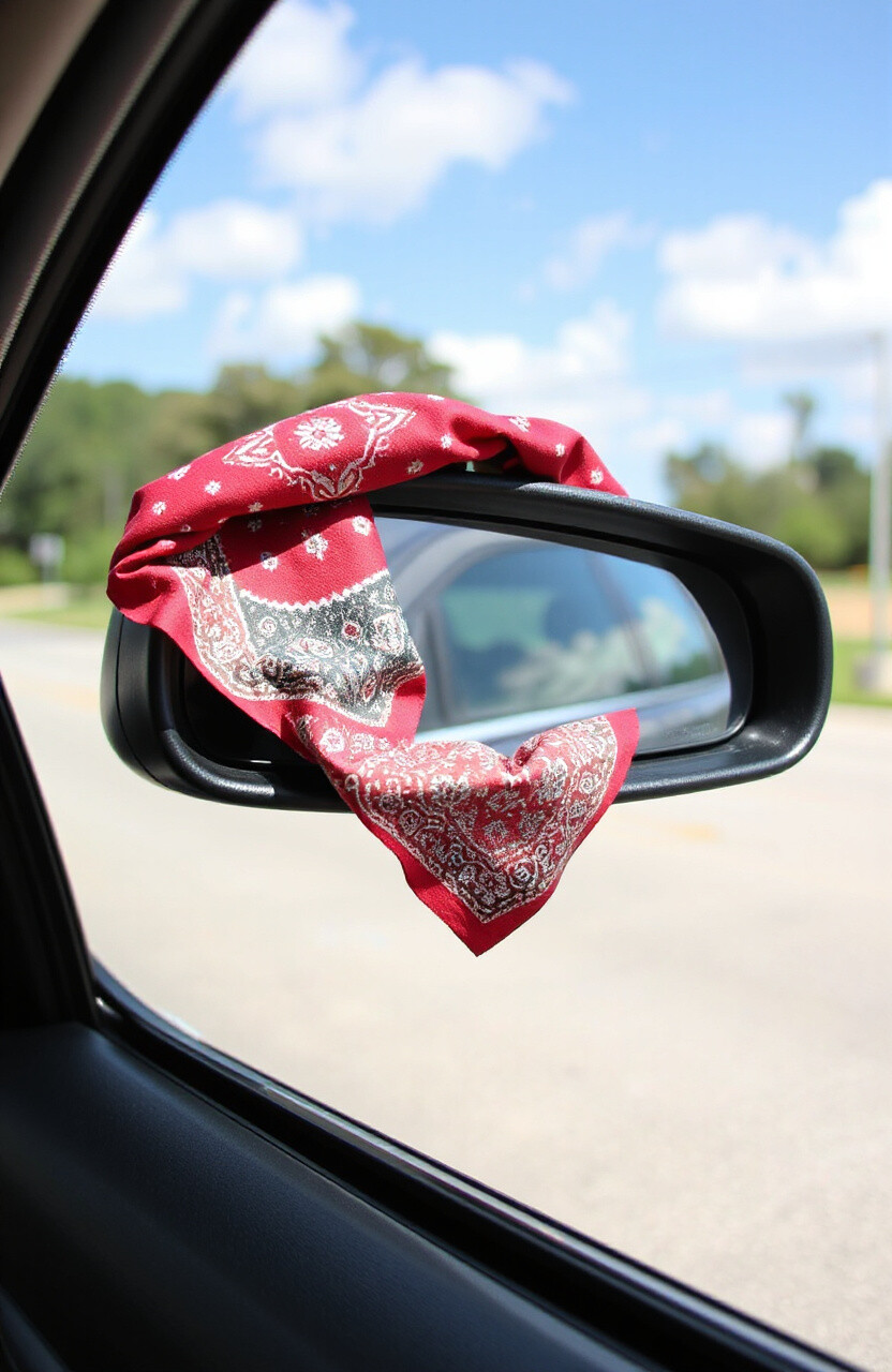 Wrap a bandana around your car mirror for a unique touch. This adds personality to your vehicle.