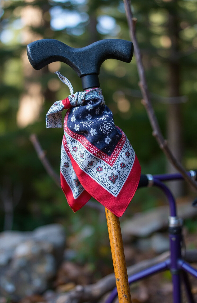 Tie a bandana to your hiking stick for a stylish touch. This adds personality to your hiking gear.