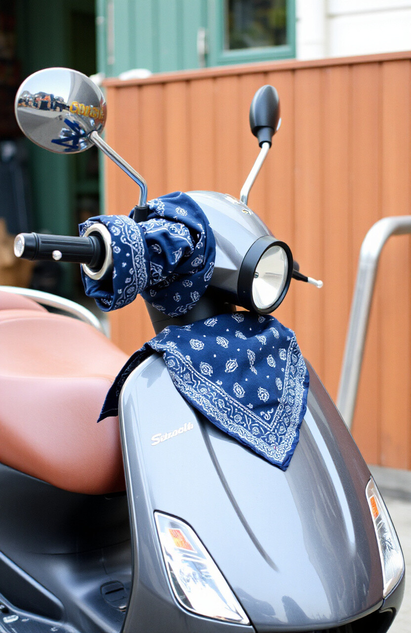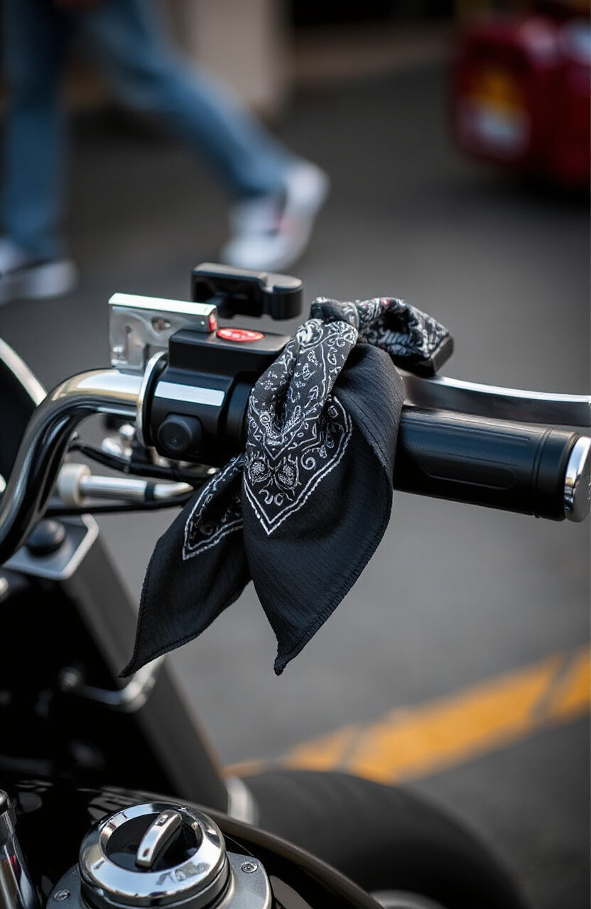 Tie a bandana to your motorcycle handles for a stylish touch. This adds personality to your ride.