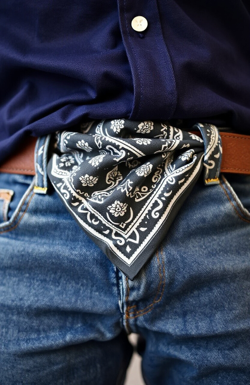 Tuck a bandana into your waistband for a touch of color. This is ideal for casual, relaxed outfits.