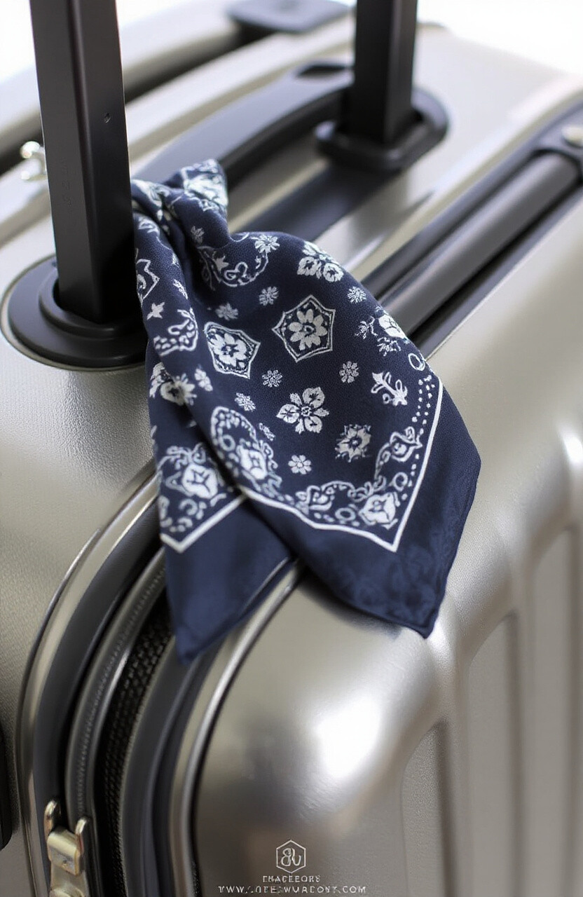 Add a bandana to your luggage tag for a pop of color. This is a great way to personalize your travel gear.