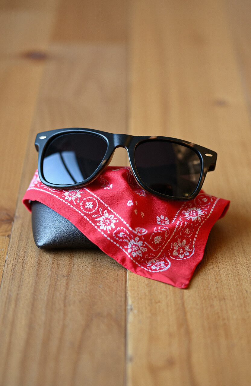 Wrap a bandana around your sunglasses case for a unique touch. This is a fun way to personalize your accessories.