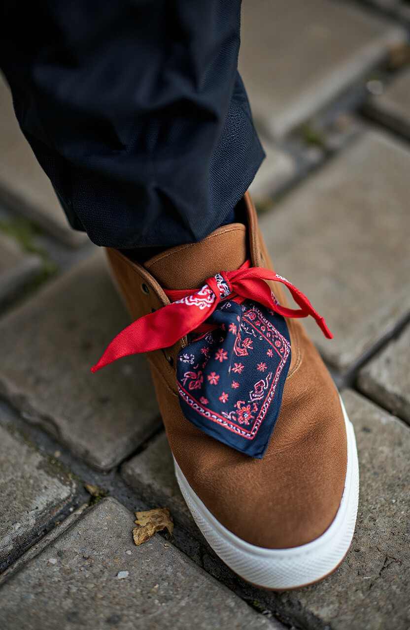 Thread a bandana through your shoe laces for a unique touch. This is perfect for adding color to your footwear.