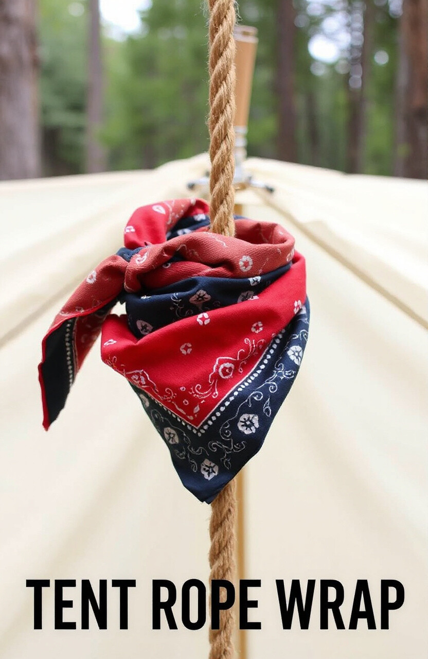 Wrap a bandana around your tent ropes for a unique touch. This adds personality to your camping gear.