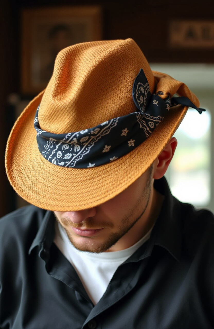 Wrap a bandana around your hat for a stylish twist. It’s a creative way to refresh your headwear without buying a new hat.