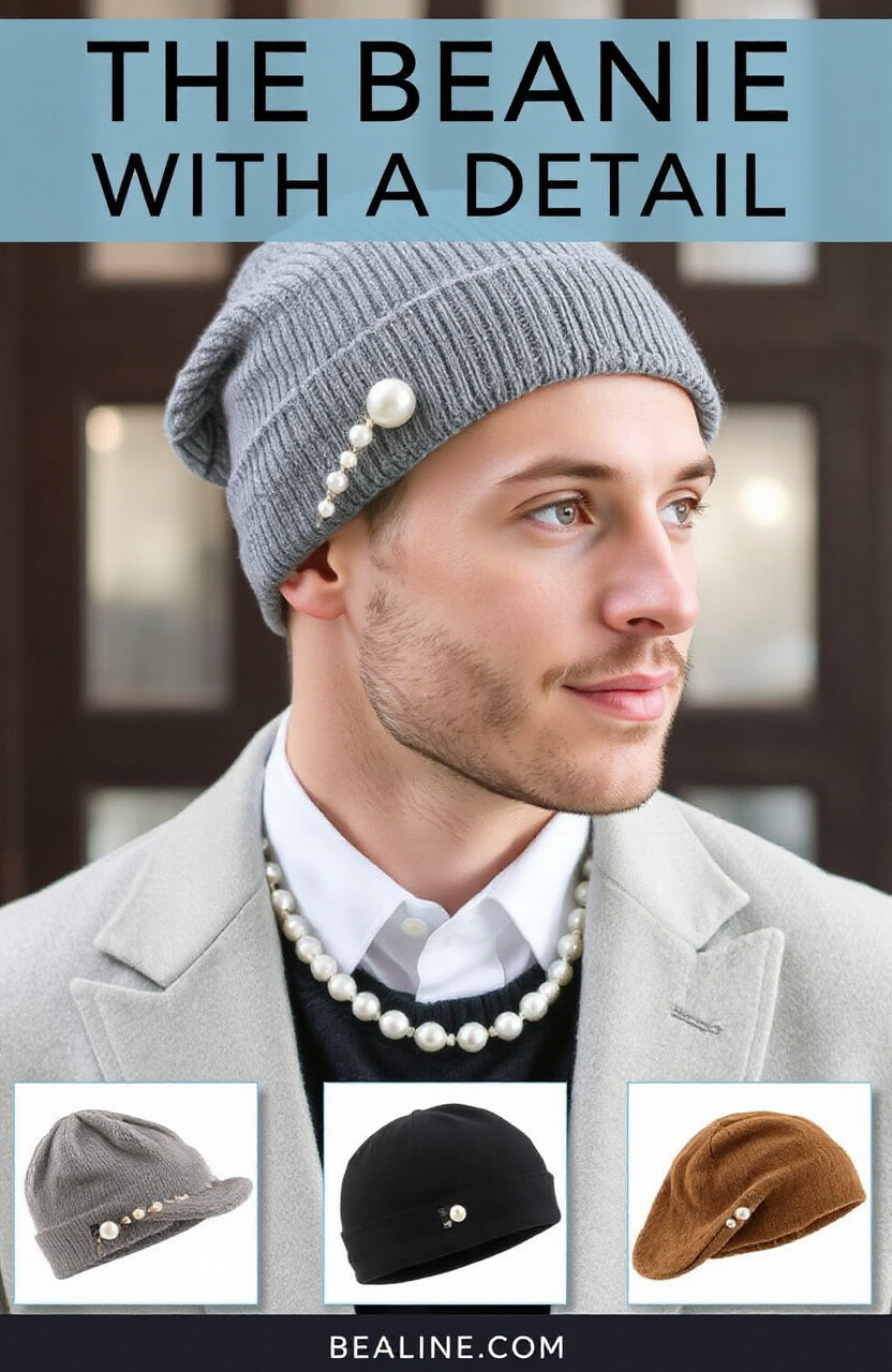 Add a touch of elegance with a beanie that features pearl details. It’s chic and sophisticated.