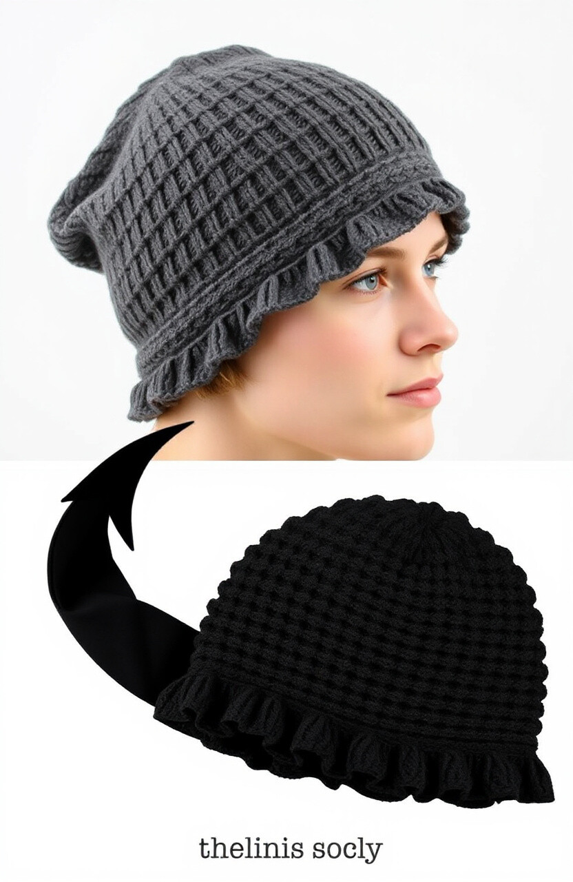 Add texture and movement with a beanie that has a ruffled edge. It’s unique and stylish.