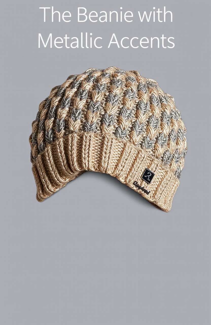 Shine bright with a beanie featuring metallic threads or accents. It’s glamorous and chic.