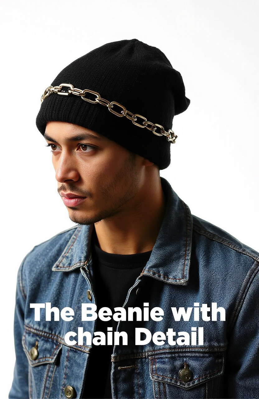 Add a touch of edginess with a beanie that features chain details. It’s bold and stylish.