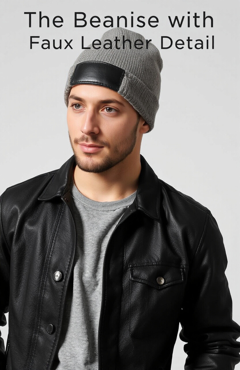 Add a touch of edginess with a beanie that features faux leather details. It’s bold and stylish.
