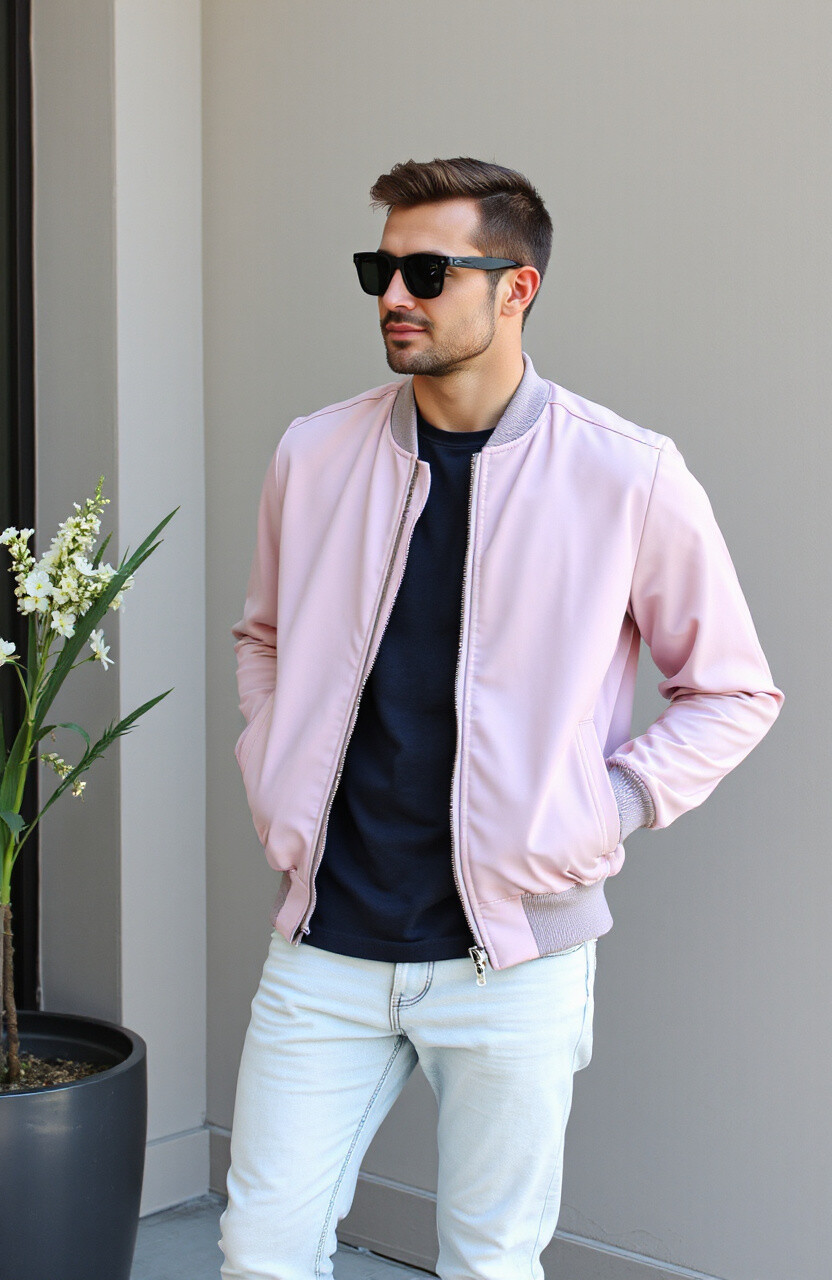 Embrace simplicity with a monochrome bomber jacket. It’s sleek and understated, perfect for any occasion. Pair it with similar tones for a cohesive look.