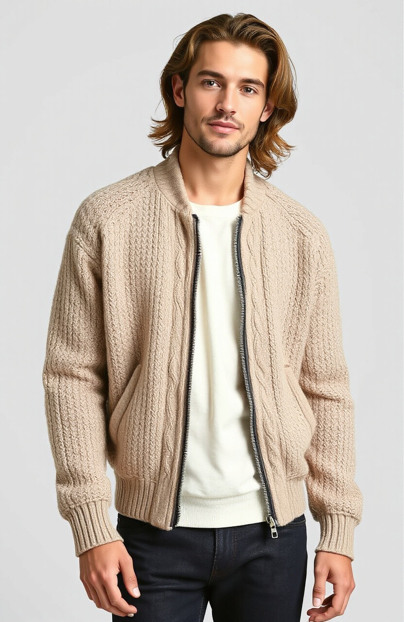 Stay warm with a knitted bomber jacket. It’s cozy and stylish, ideal for chilly days. Pair it with jeans or leggings for a casual look.
