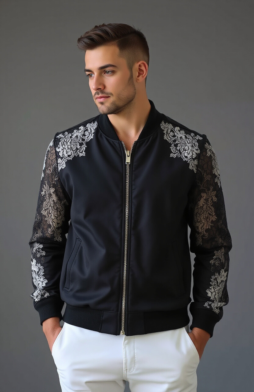 Add a touch of elegance with lace accents on your bomber. It’s delicate and feminine, perfect for special occasions. Pair it with dresses or skirts for a chic look.
