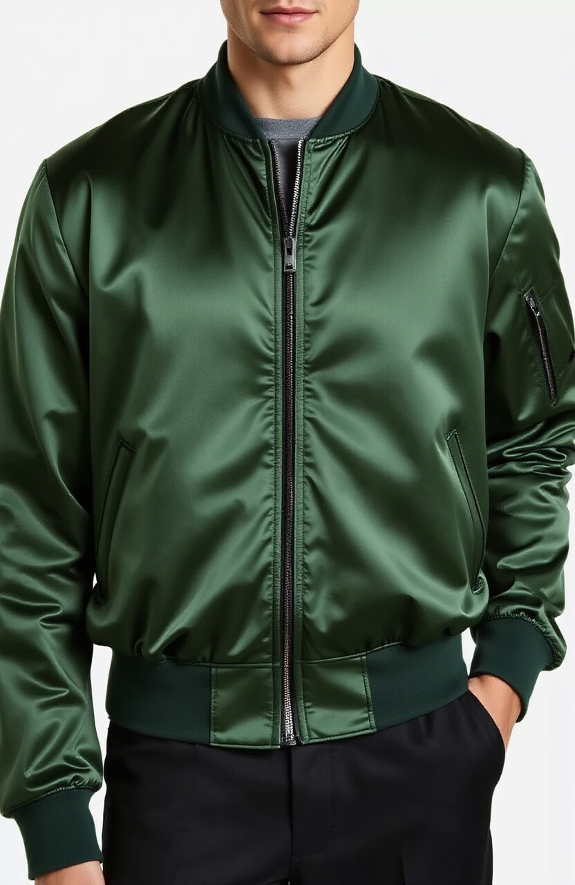 Feel luxurious with a satin bomber jacket. Its sheen adds elegance to any outfit. Perfect for evening events or a night out.