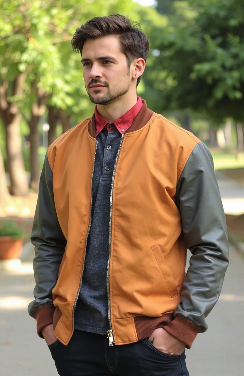 Have fun with a colorblock bomber jacket. It’s playful and vibrant, perfect for a youthful look. Pair it with casual outfits for a fun vibe.