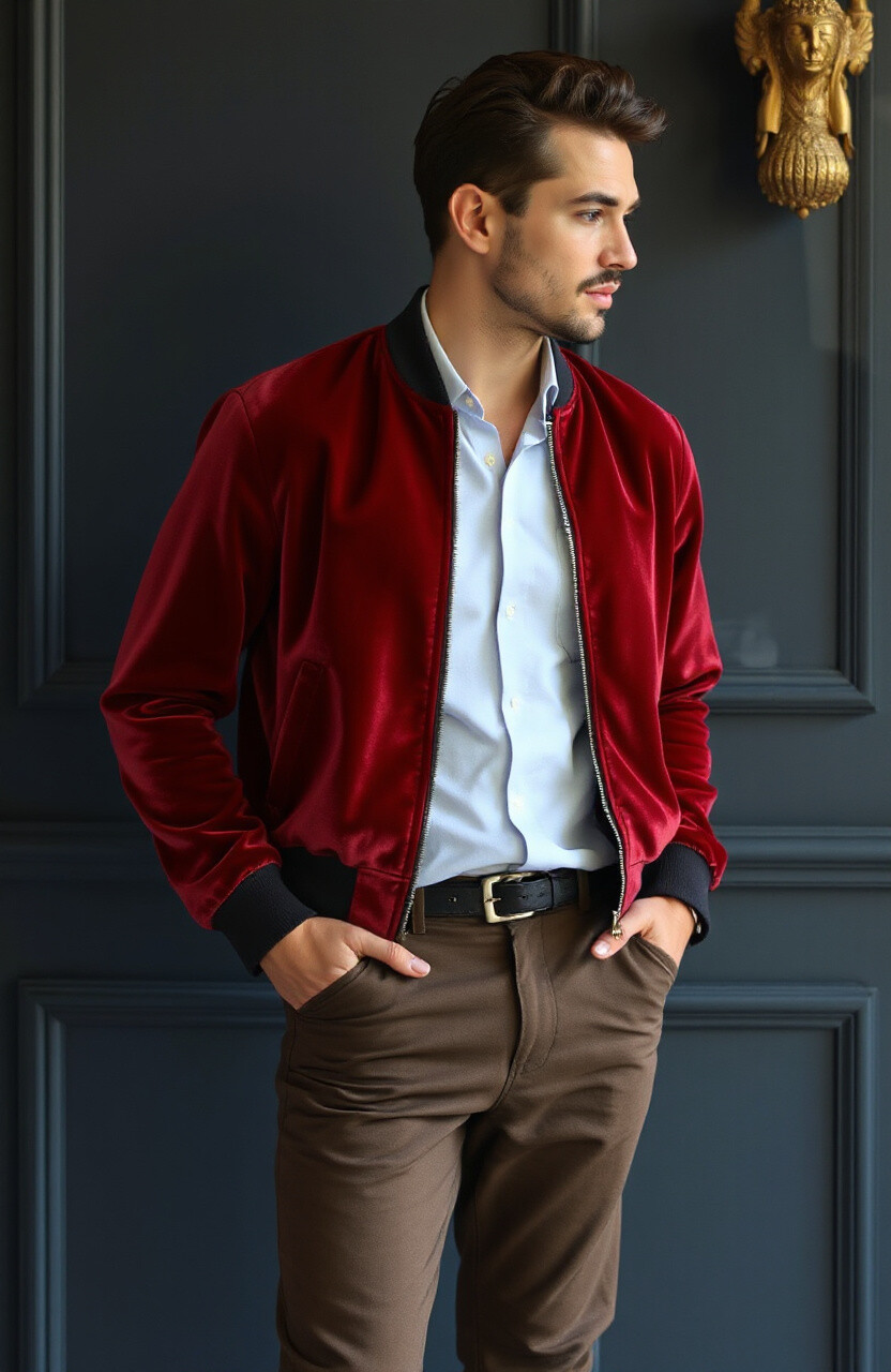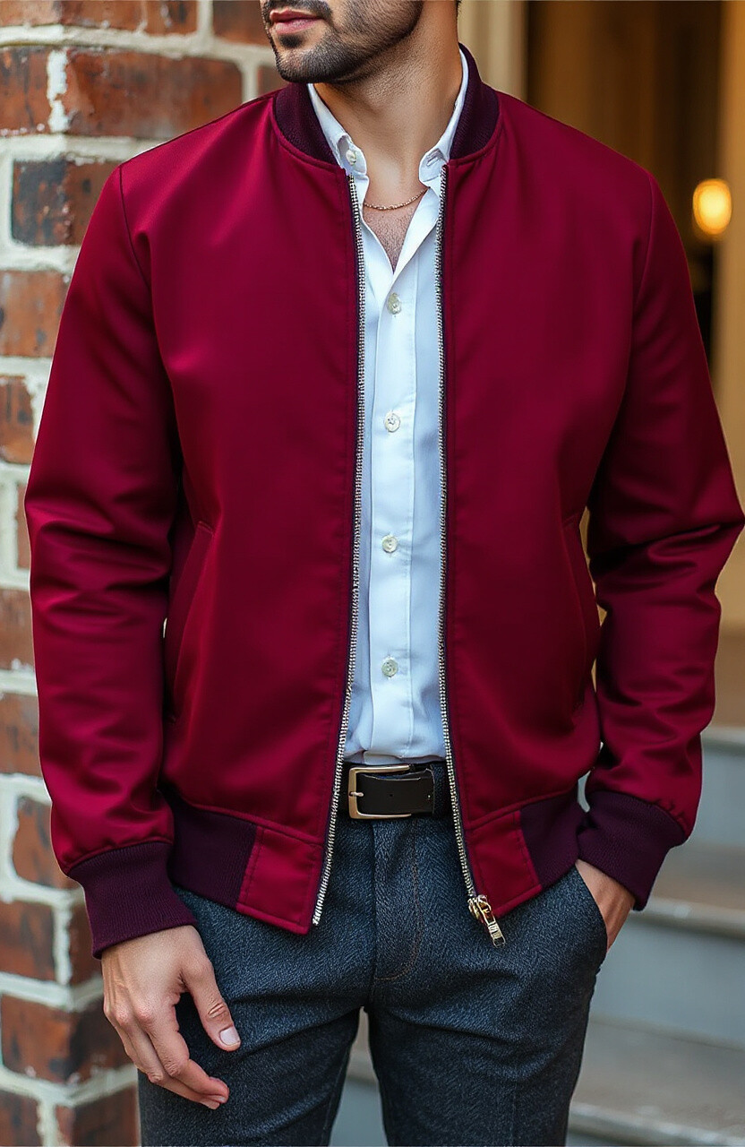 Make a bold statement with a red bomber jacket. It’s vibrant and exciting, perfect for turning heads. Pair it with neutral colors to let the jacket shine.