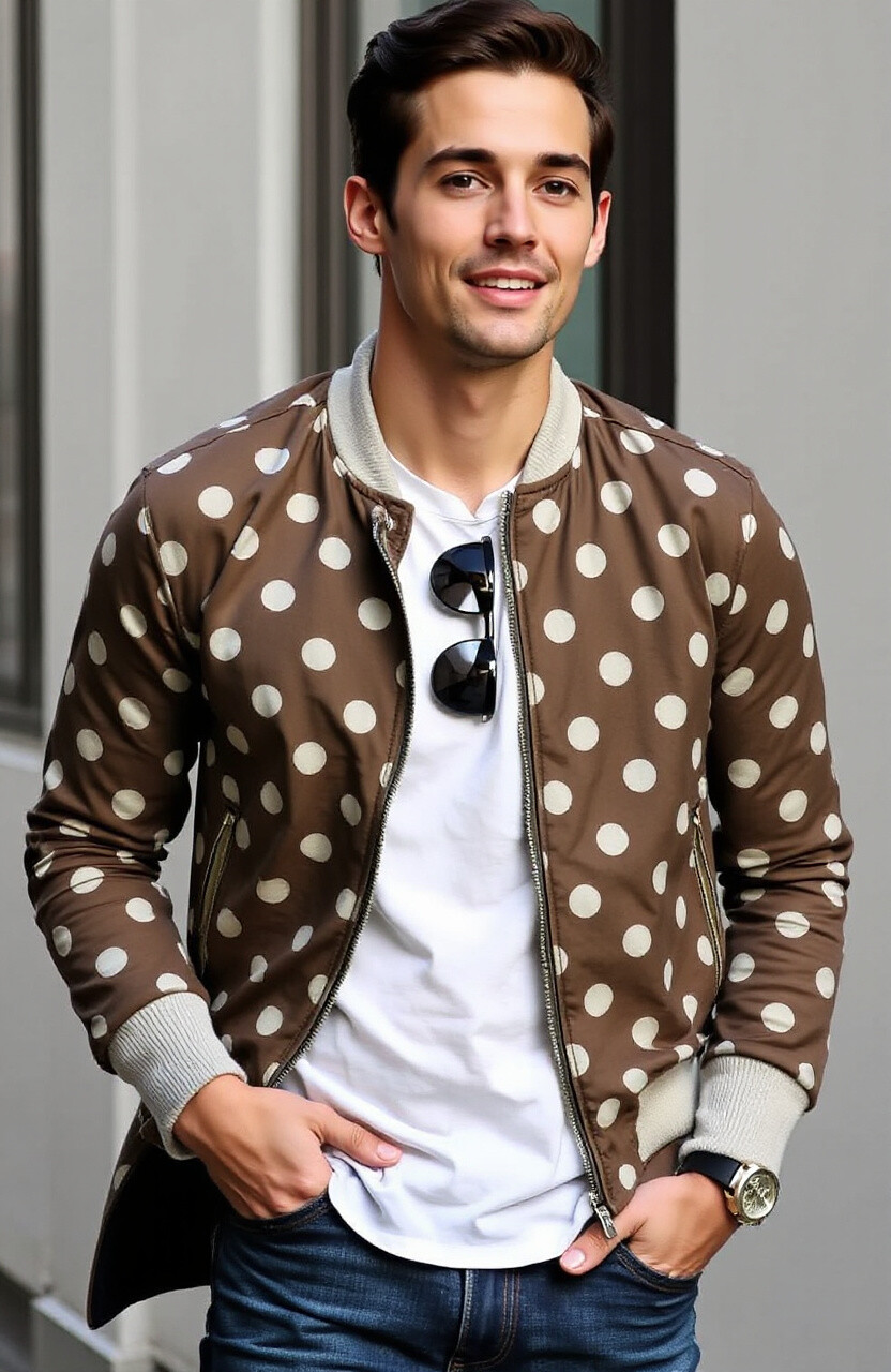 Have fun with polka dots on your bomber jacket. It’s whimsical and cheerful, perfect for brightening your day. Pair it with simple pieces for a balanced look.
