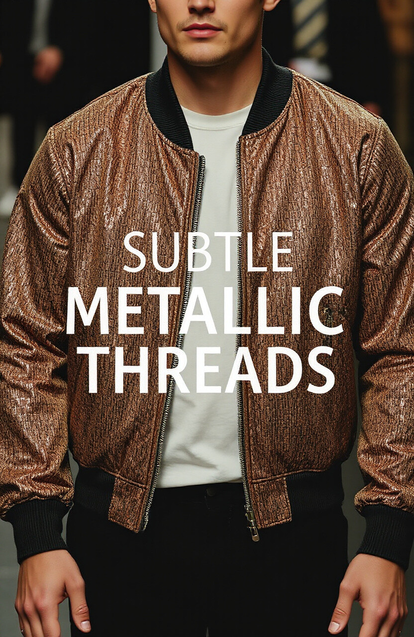 Shimmer subtly with metallic threads in your bomber. It’s understated yet glamorous, perfect for evening wear. Pair it with simple accessories for a balanced look.