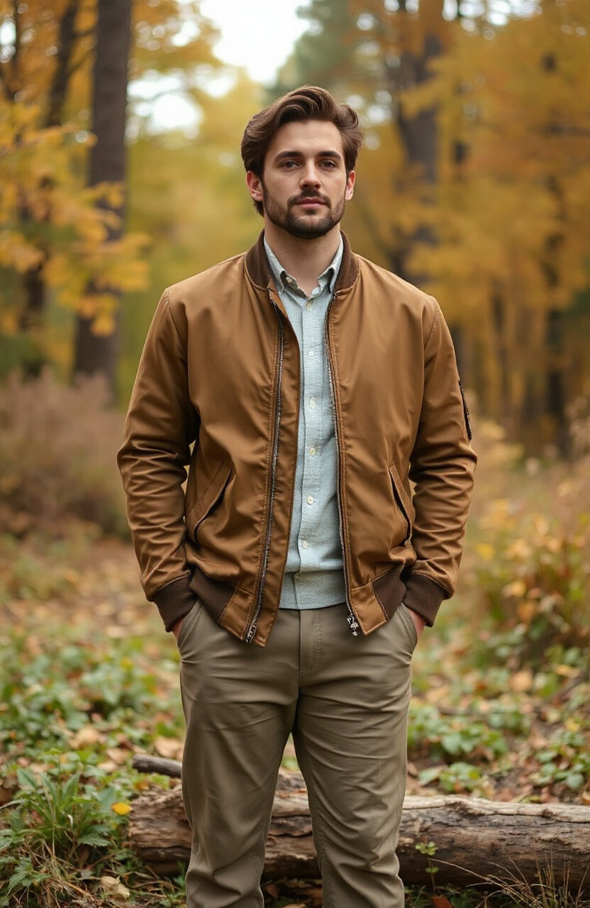 Connect with nature in an earthy-toned bomber jacket. It’s calming and sophisticated, perfect for any season. Pair it with neutral hues for a grounded look.