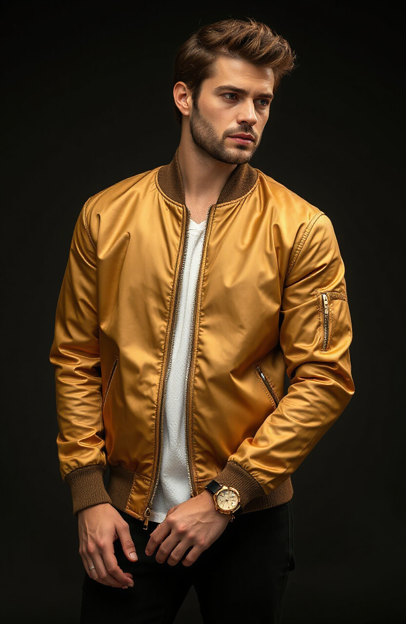 Feel luxurious with gold accents on your bomber. It’s regal and sophisticated, perfect for evening events. Pair it with dressy outfits for a polished look.