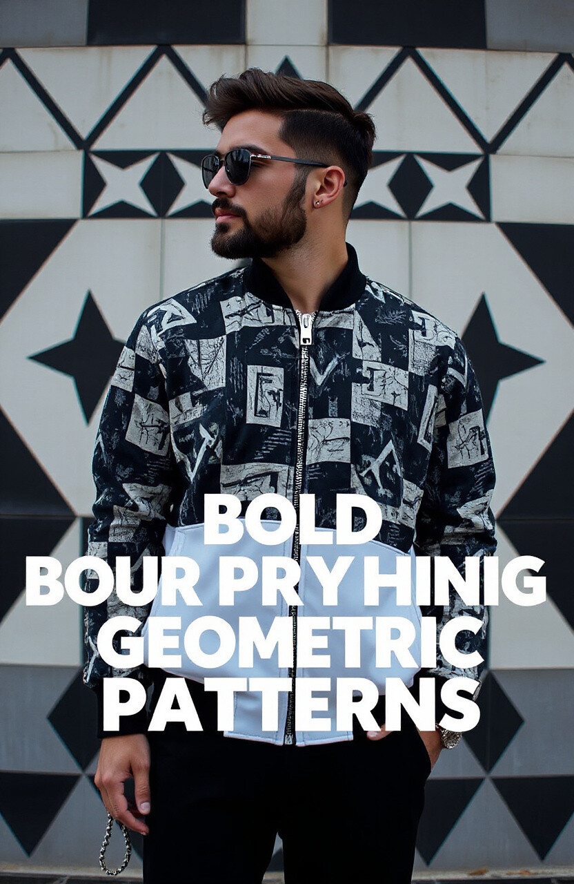 Make a statement with geometric patterns on your bomber. It’s bold and dynamic, perfect for artistic souls. Pair it with simple pieces to let the pattern stand out.