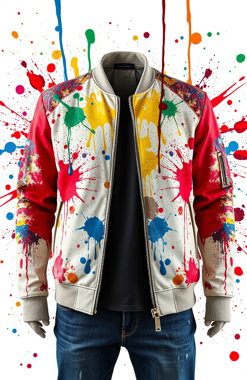 Unleash your inner artist with a paint-splattered bomber. It’s bold and creative, perfect for making a statement. Pair it with simple outfits to let the jacket shine.