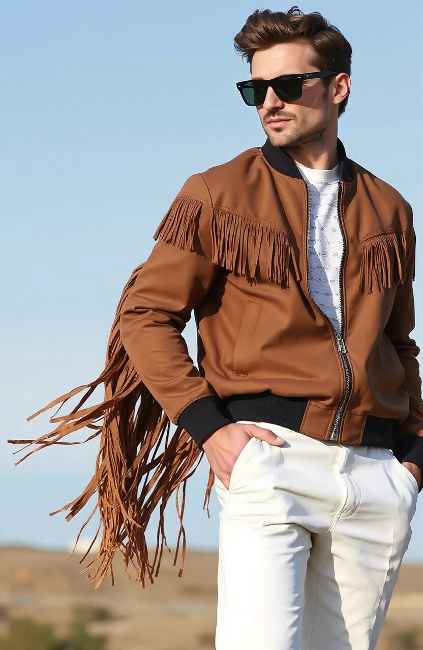 Turn heads with fringe details on your bomber. It’s dynamic and playful, perfect for making a statement. Pair it with simple outfits to let the fringe stand out.
