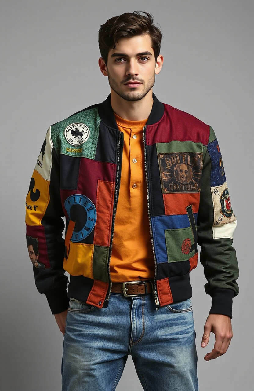 Celebrate creativity with a patchwork bomber jacket. It’s unique and colorful, perfect for artistic souls. Pair it with simple pieces to let the jacket be the star.