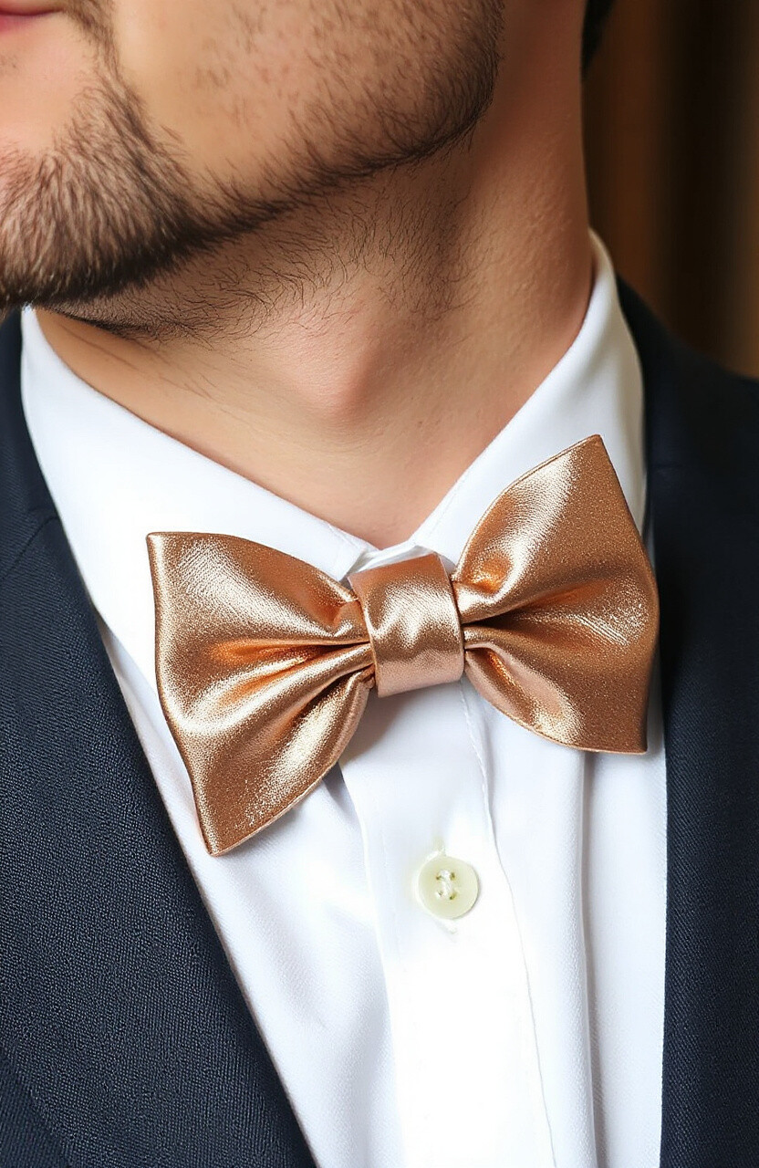 Shine bright with a metallic bow tie. Perfect for evening events, it adds a touch of glamour and sophistication.