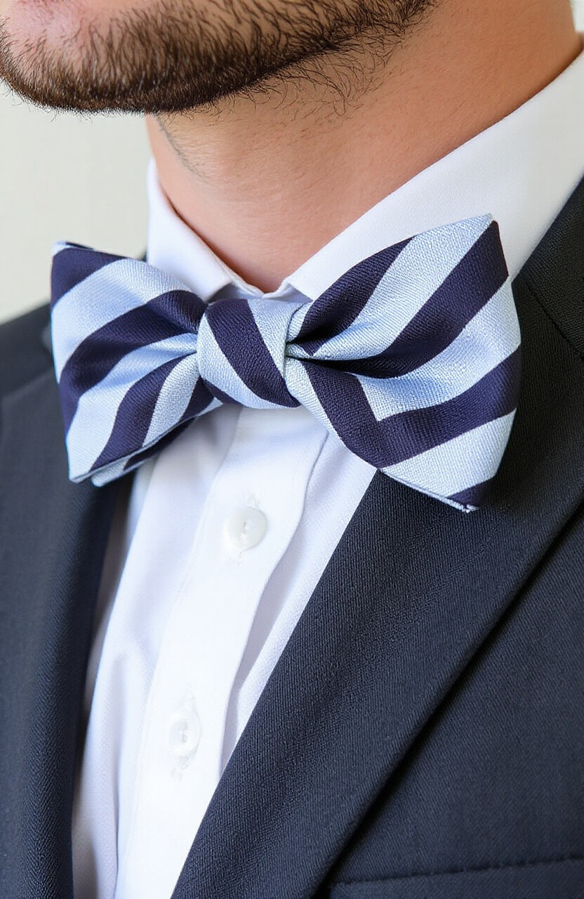 Striped bow ties are versatile, suitable for both business meetings and casual dinners. They’re a great way to add some flair to a solid-colored outfit.