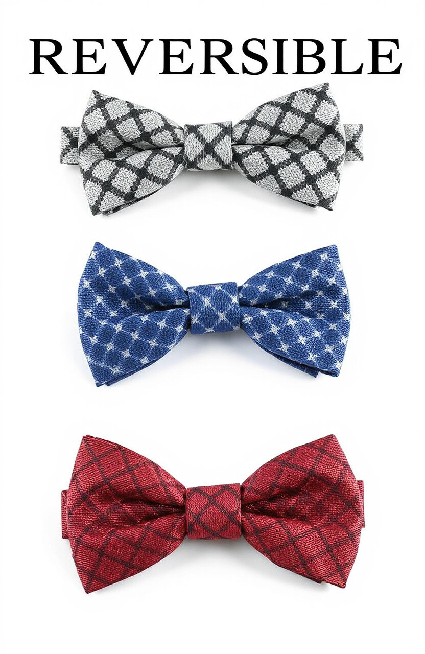 Get two looks in one with a reversible bow tie. Perfect for those who love variety, it offers different patterns or colors on each side.