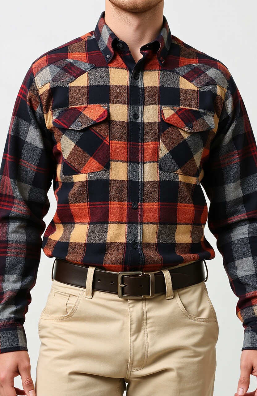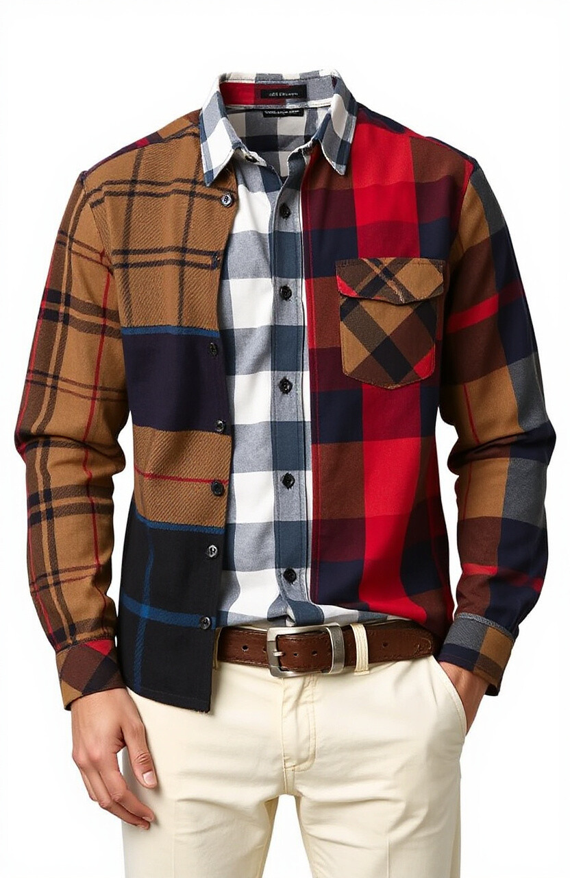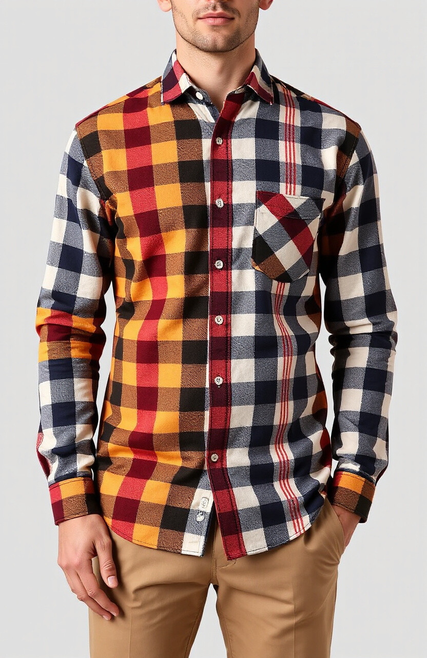 Plaid fusion shirts mix different plaid patterns, creating an artistic and unique style. They’re perfect for showing off your creative side.