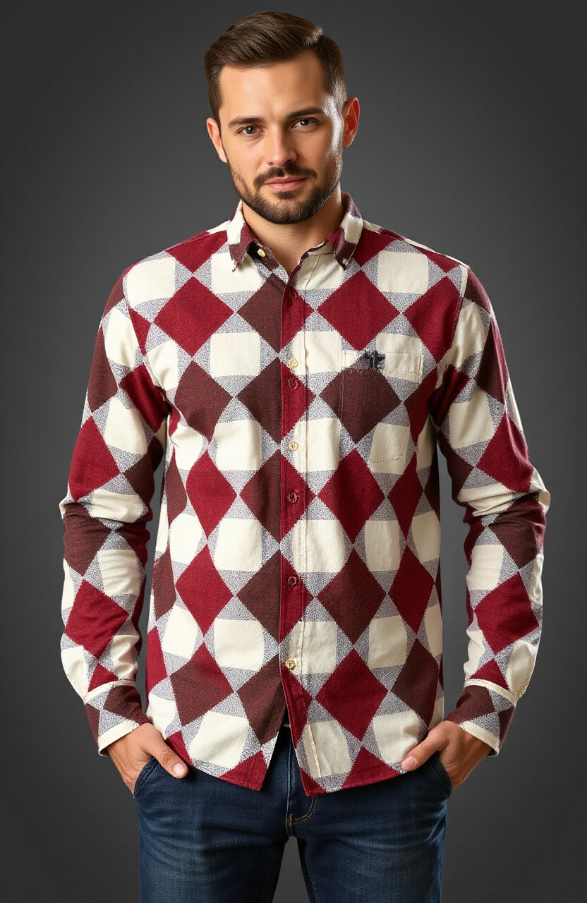 Collage check shirts mix different check patterns, offering a creative and unique style. They’re perfect for those who love to express their individuality.