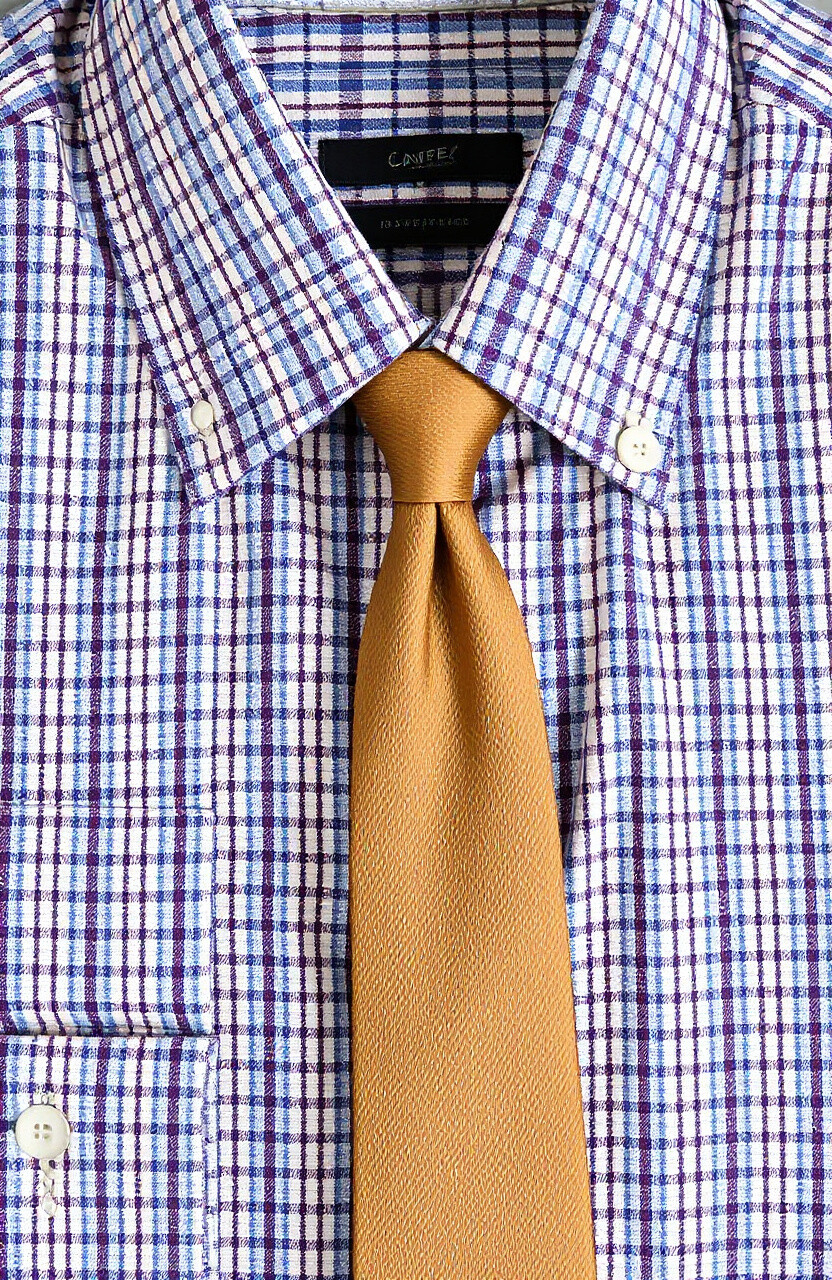 Tattersall shirts feature a fine grid pattern, offering a subtle yet sophisticated style. They are perfect for office wear or smart-casual events. Pair with a solid-colored tie for a polished appearance.