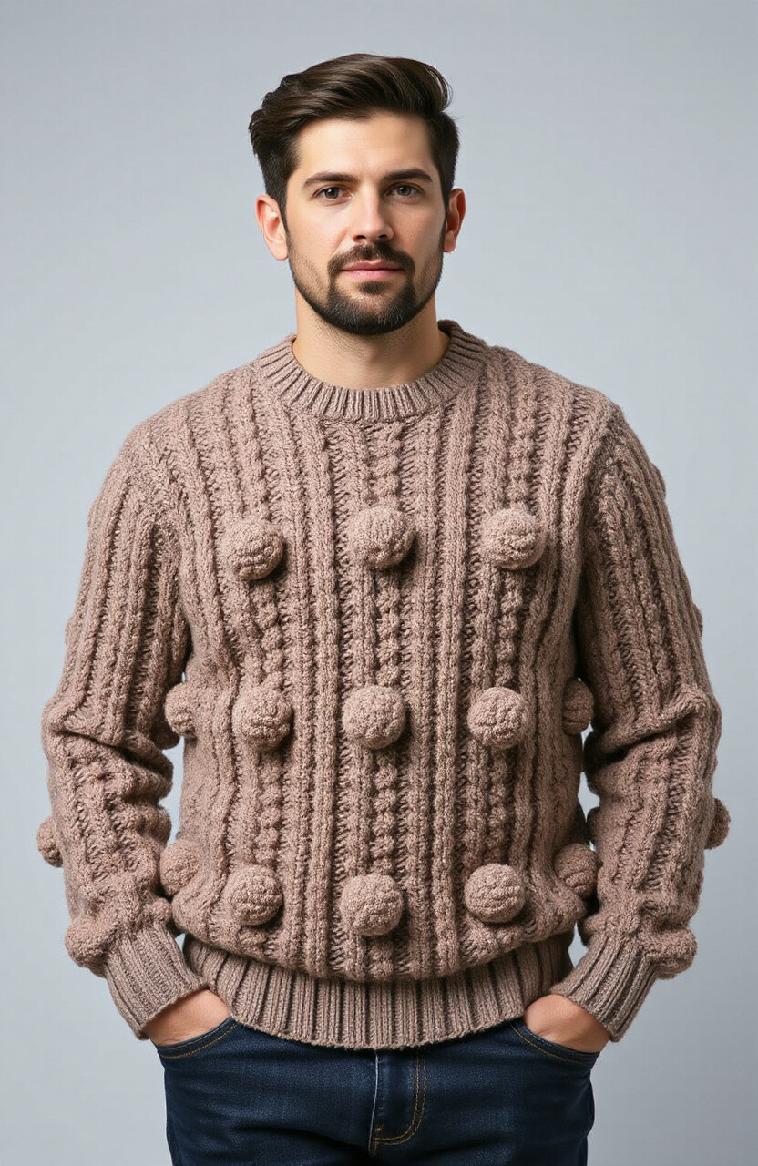 The playful bobbles add a unique twist to this chunky knit. It’s all about fun textures and a bit of whimsy. A perfect choice for those who love playful details.