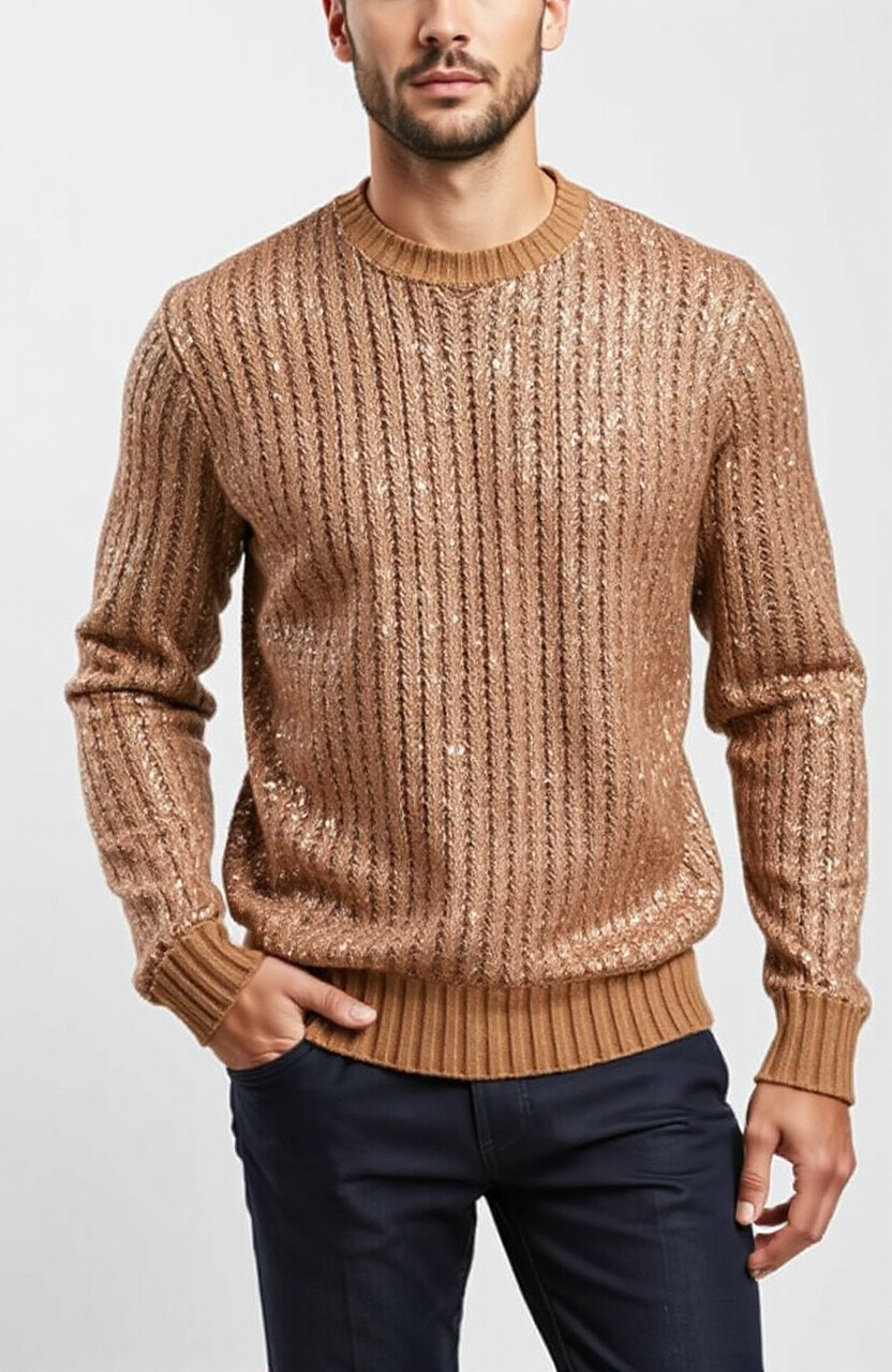 Add a touch of sparkle to your fall wardrobe. This sweater’s metallic threads catch the light beautifully. Great for evening outings or festive occasions.