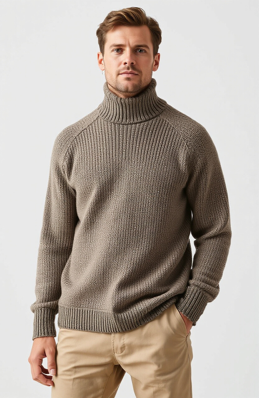With a generous fit, this sweater is like a warm hug on a chilly day. The turtleneck adds extra warmth around the neck, making scarves optional. Perfect for layering or wearing solo.