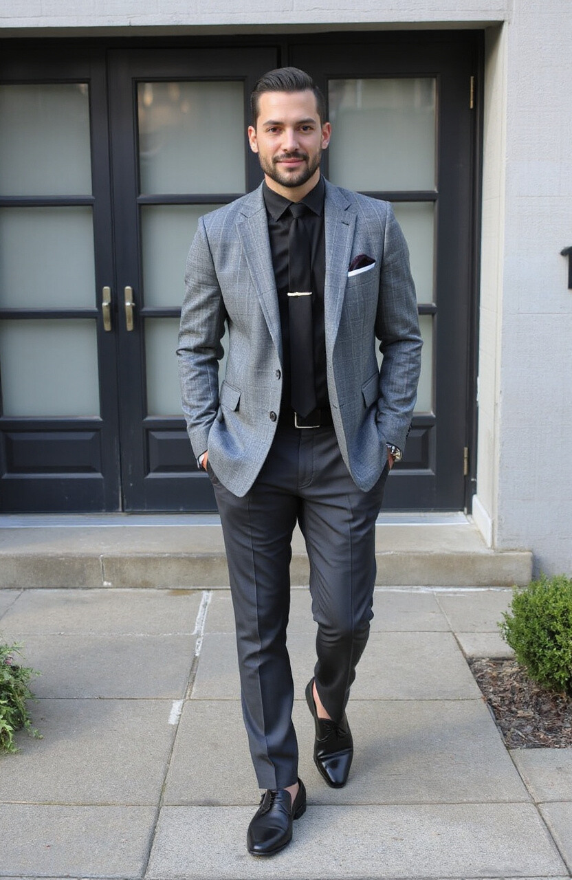 Black and grey is a sophisticated combo that’s perfect for formal occasions. It exudes elegance and class. This look is versatile and timeless.