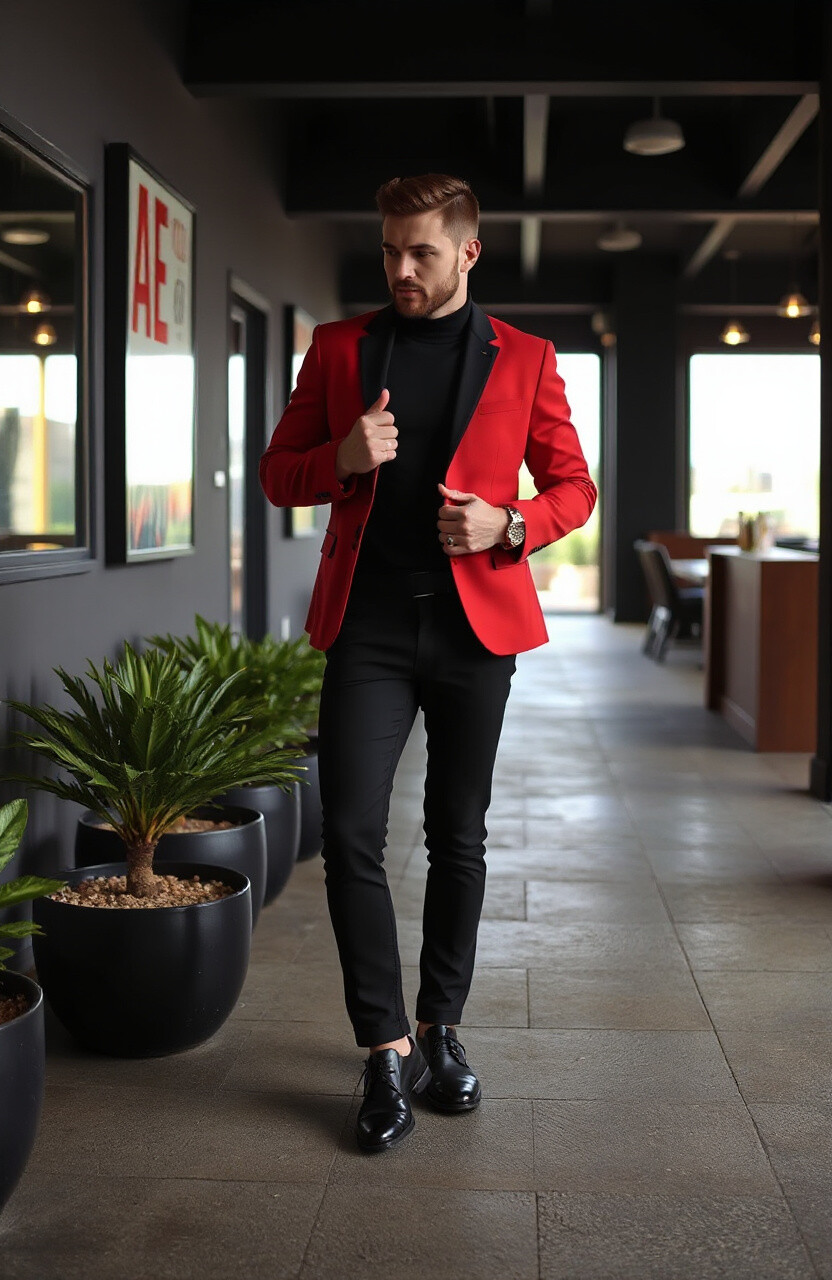 Pair a red jacket with black pants or vice versa. It’s unique and edgy, yet easy to put together. Don’t forget to keep the accessories minimal.