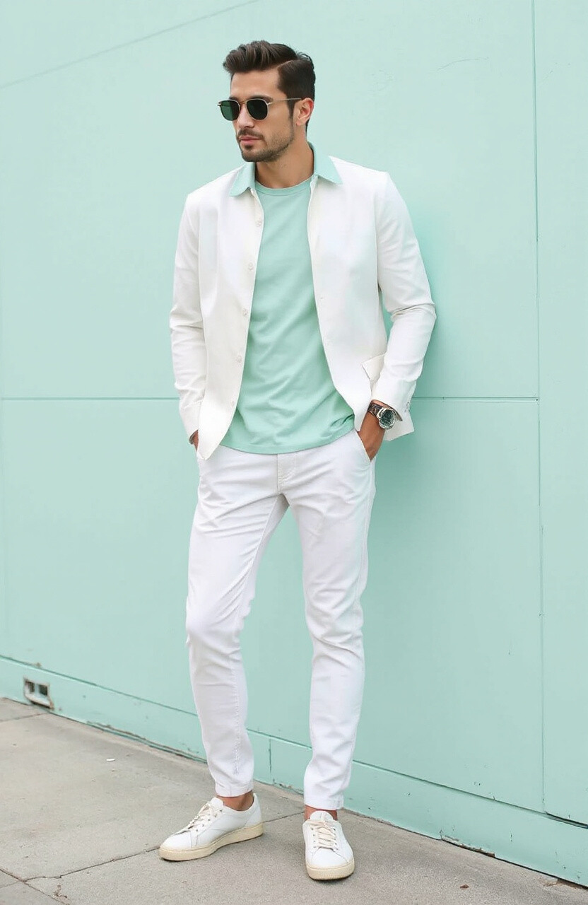 Wear a mint shirt with white pants or a white jacket over a mint tee. It’s easy to put together and cost-effective. Add some silver accessories for a touch of elegance.