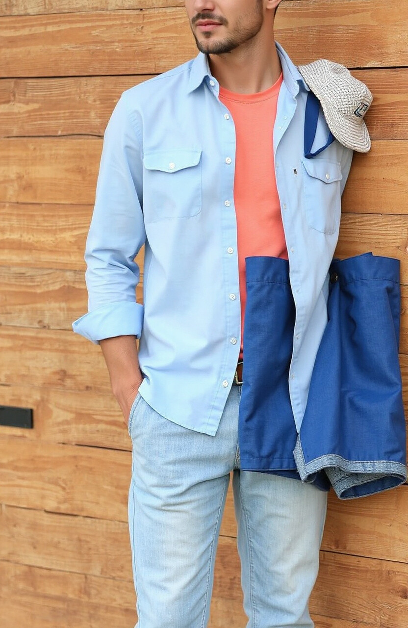 Wear a light blue shirt with coral shorts or a coral tee with light blue jeans. It’s easy to achieve and budget-friendly, allowing you to play with colorful accessories.