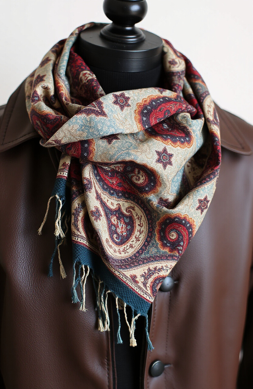 Bring a touch of vintage charm with a paisley print scarf. The intricate patterns are eye-catching and sophisticated. Ideal for adding a pop of color to a neutral outfit.