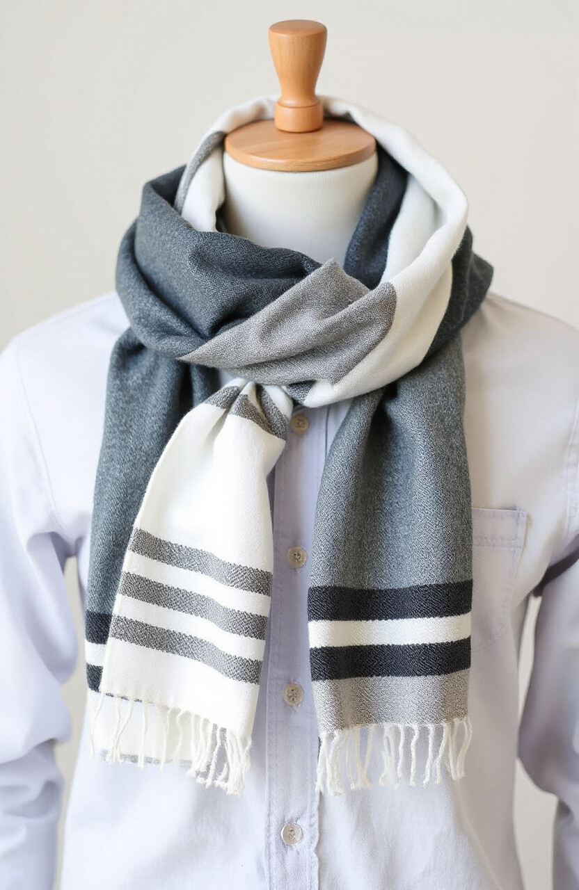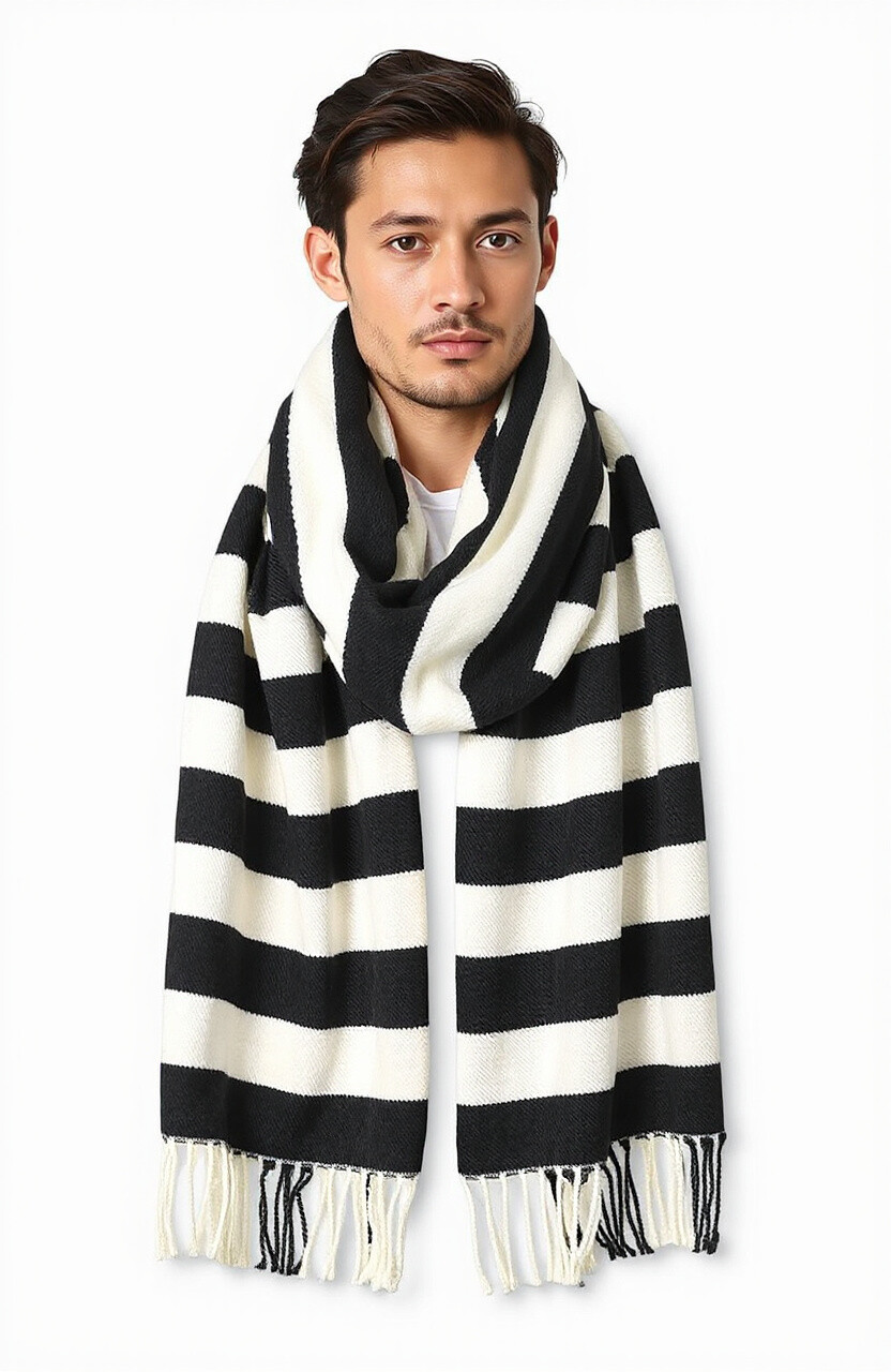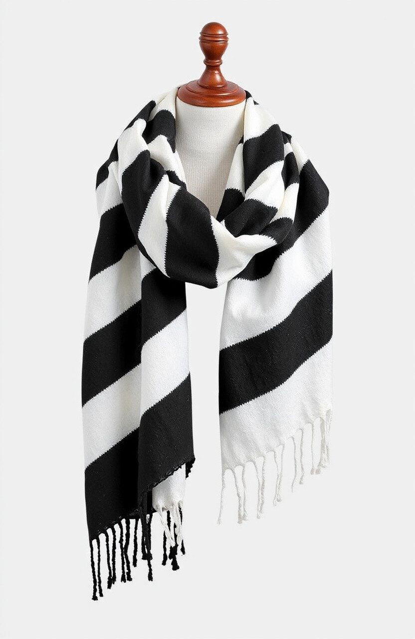 The classic striped scarf never goes out of style. With its timeless design, it suits both casual and formal outfits. This scarf is light yet warm, making it a perfect all-season accessory.