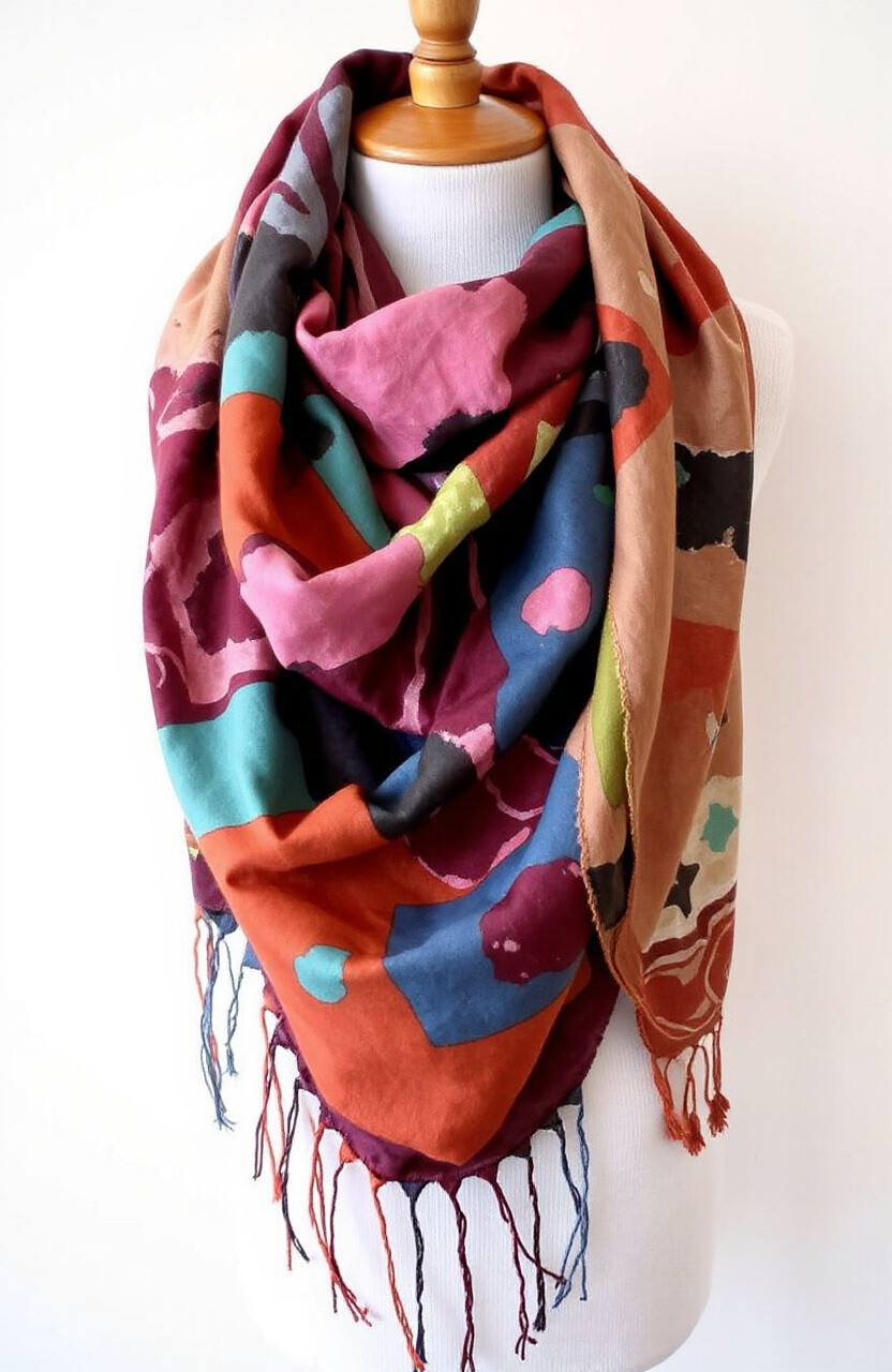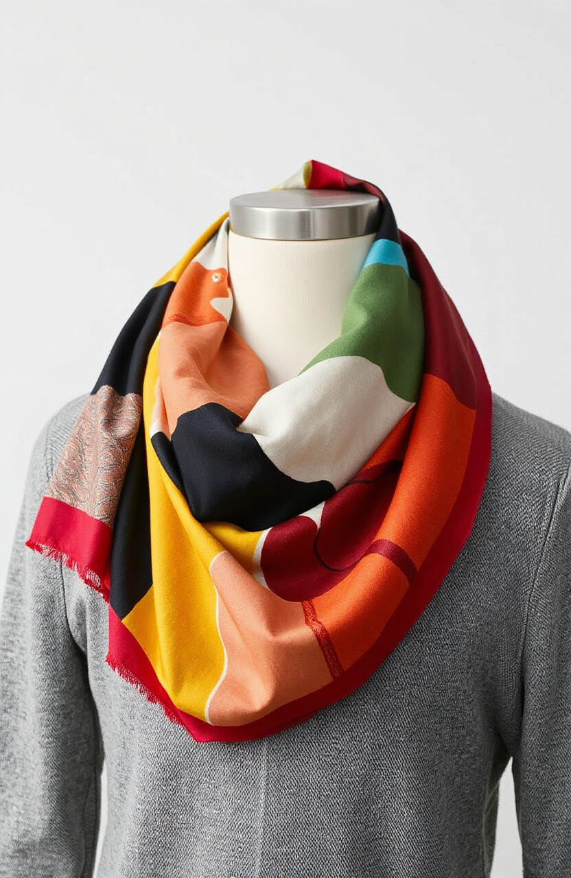 For the art lovers, an abstract art scarf is a must-have. The unique designs resemble a wearable canvas.