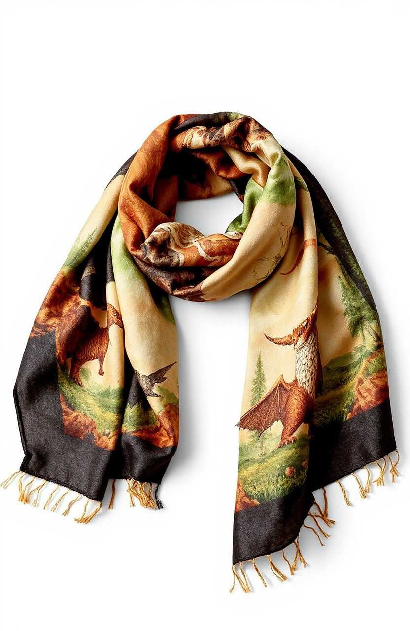 Step into a whimsical world with a fantasy-themed scarf. Featuring mythical creatures or magical landscapes, it’s perfect for dreamers.