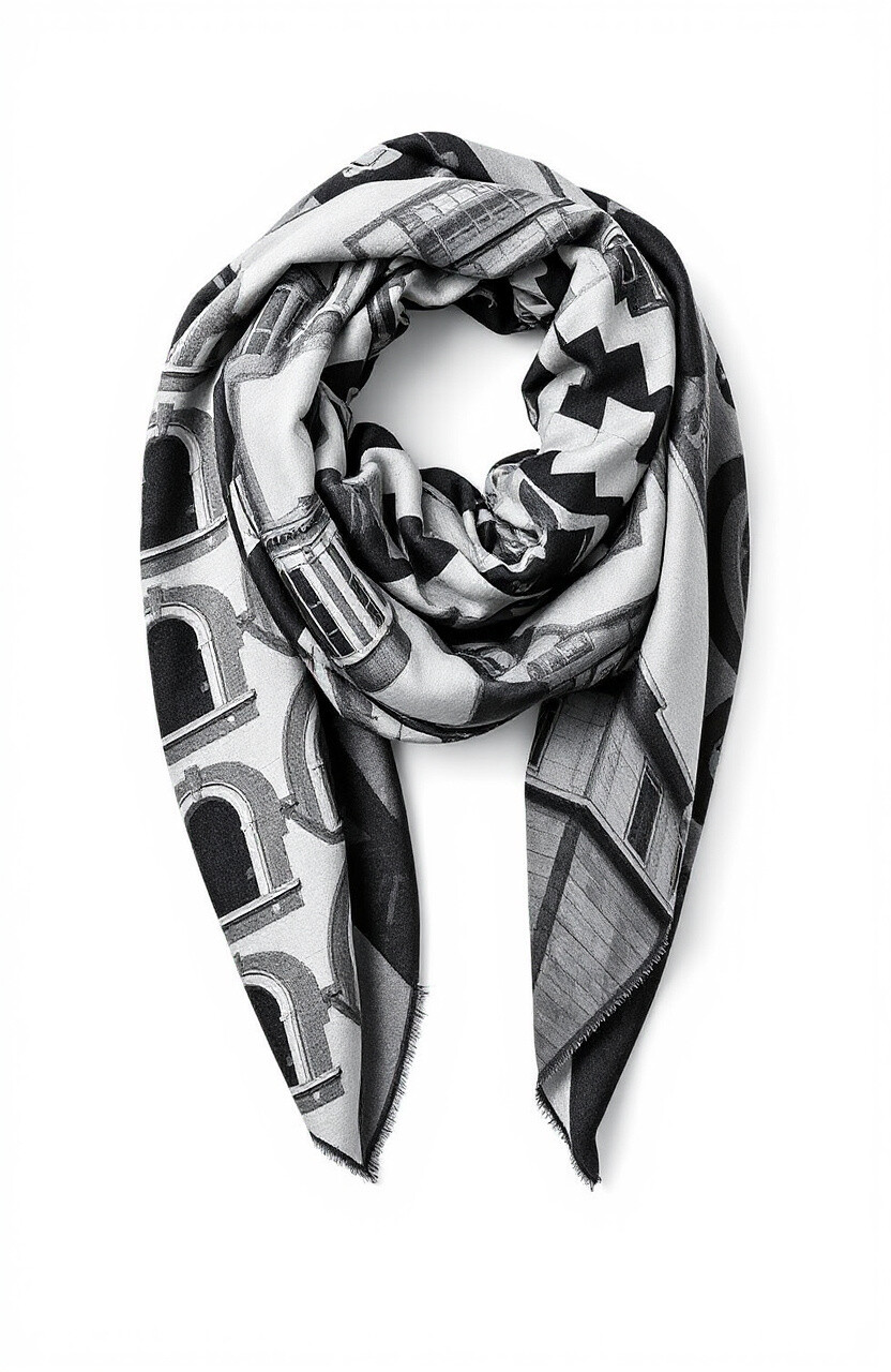 Admire the beauty of structures with an architectural pattern scarf. Featuring buildings or geometric designs, it’s perfect for architecture enthusiasts.