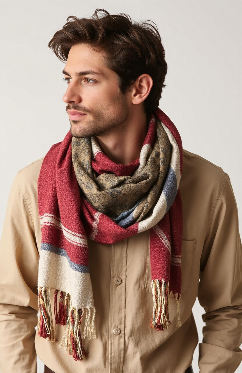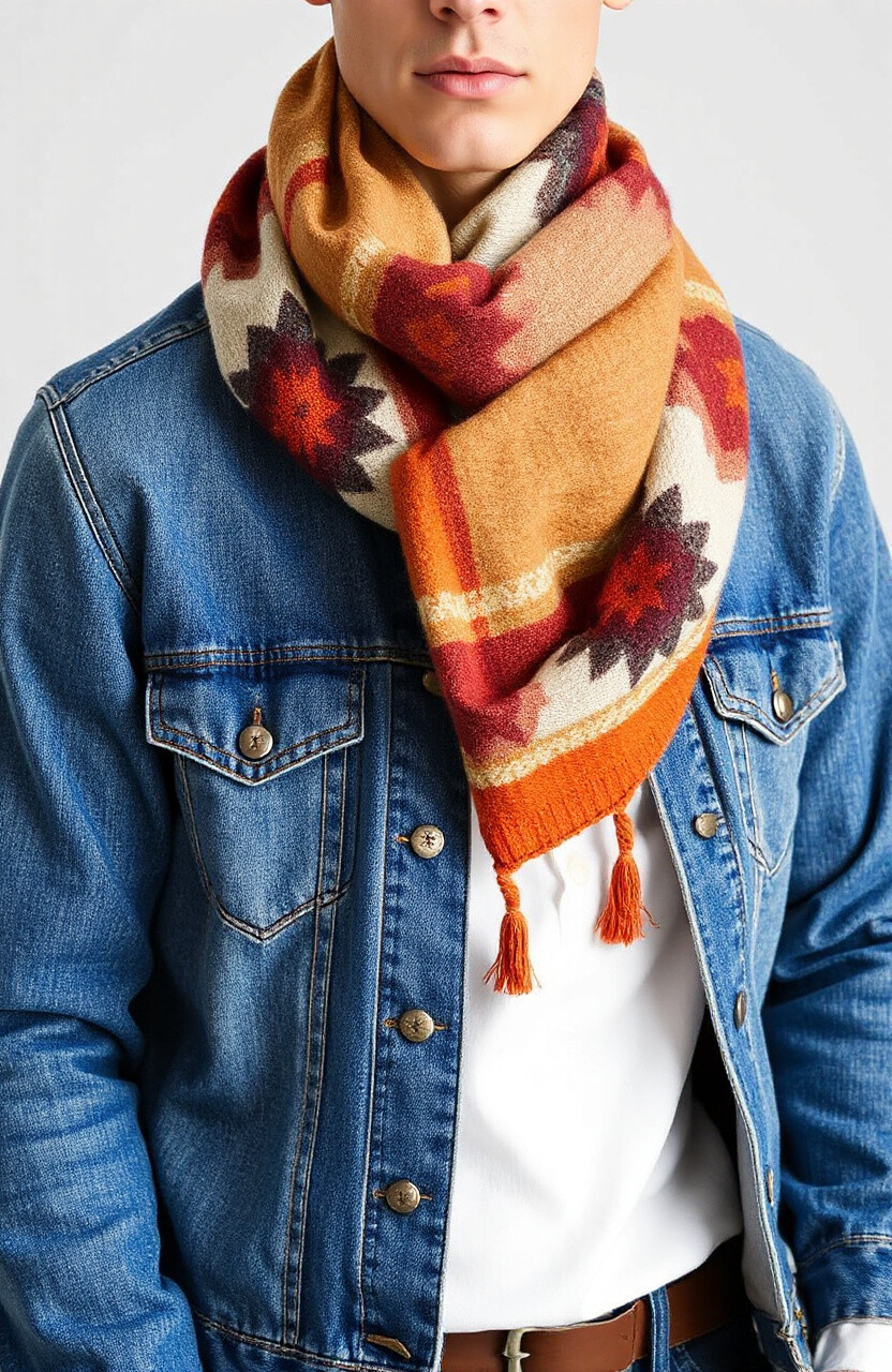Capture the free-spirited vibe with a bohemian scarf. The relaxed patterns and earthy colors are perfect for laid-back styles.
