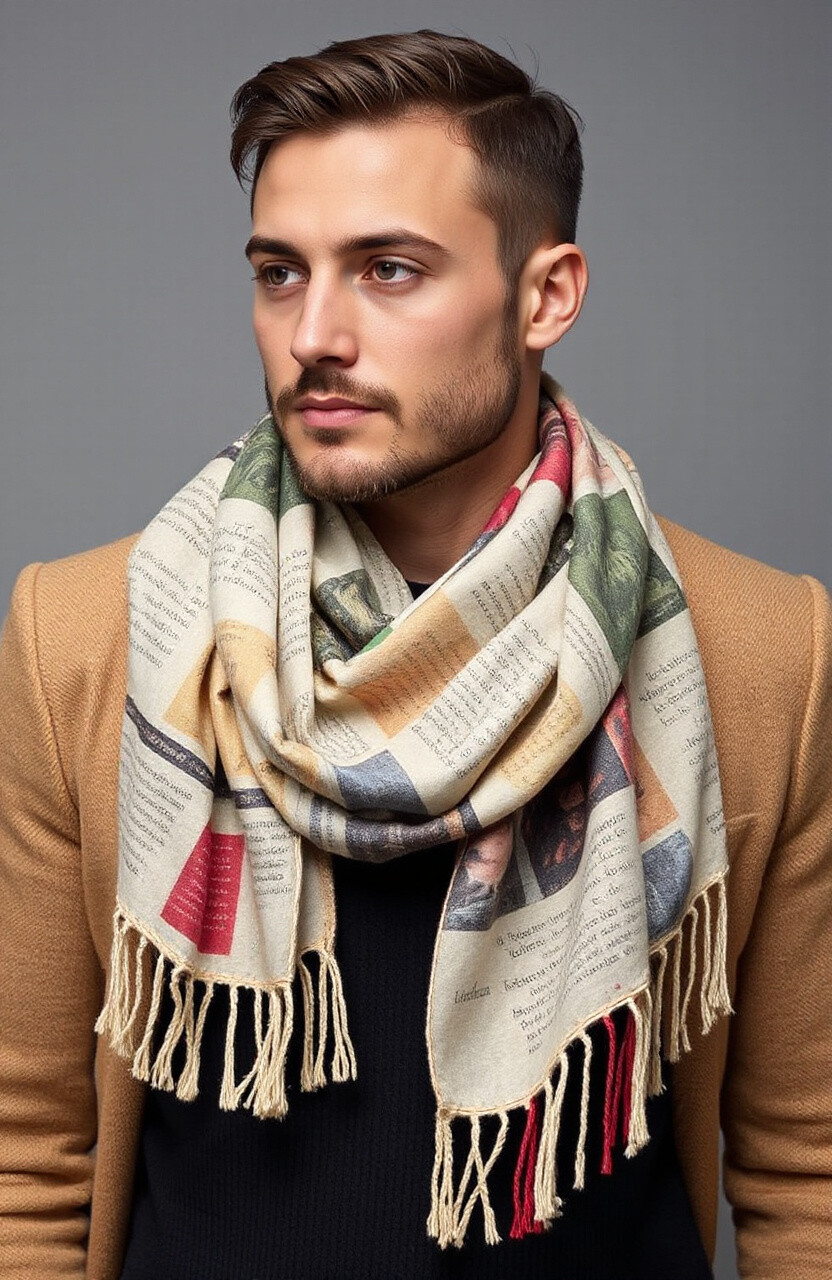 For book lovers, a literary-themed scarf is a dream come true. Featuring quotes or book covers, it’s a stylish nod to your love of reading.
