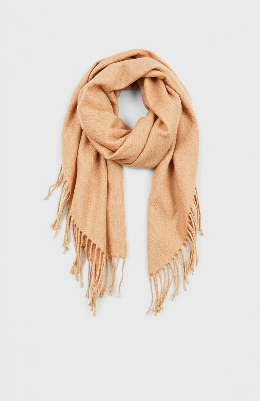 Fringe details add a playful touch to any scarf. This design is both stylish and fun, making it a great choice for casual outings.